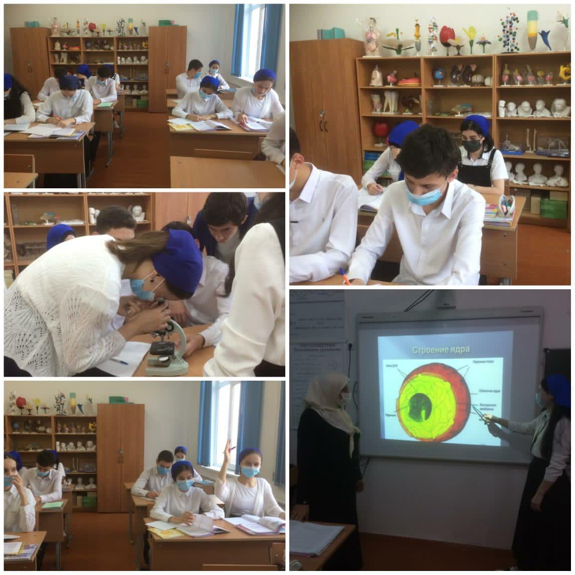 02.11.2020"Тише, идут занятия!" На базе МБОУ "СОШ с. Белгатой" работает объединение МБУ ДО "ЭБС г.Шали". Занятие проводит Ташахманова Раиса Махиевна. Тема занятия "Химический состав. Структурные компоненты ядра"