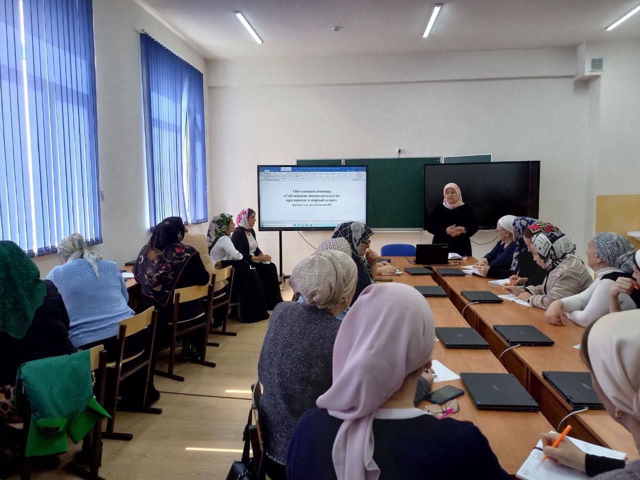 Сегодня, 20 апреля, заместитель начальника Отдела образования Дергиева А.Д. провела обучающий семинар "Соблюдение законодательства при приеме в первый класс". В семинаре приняли участие все завучи по начальной школе.