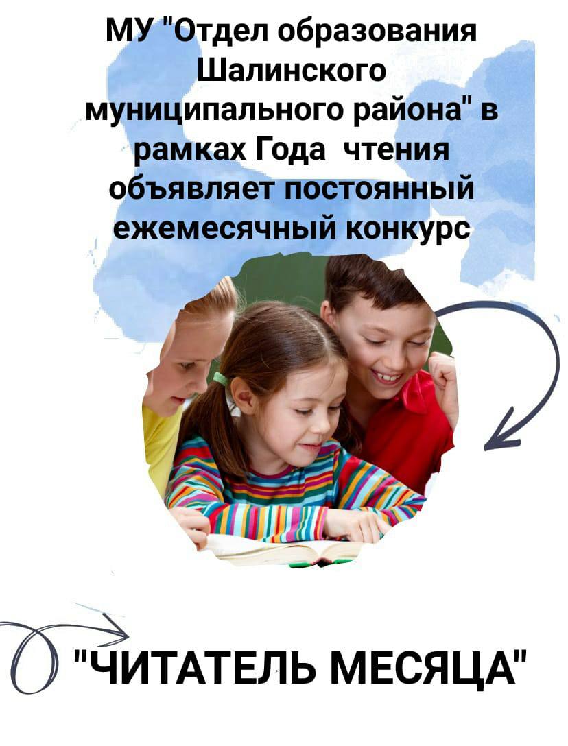 07.10.2022В рамках Года чтения объявляет постоянный ежемесячный конкурс "Читатель месяца" среди обучающихся общеобразовательных организаций района.